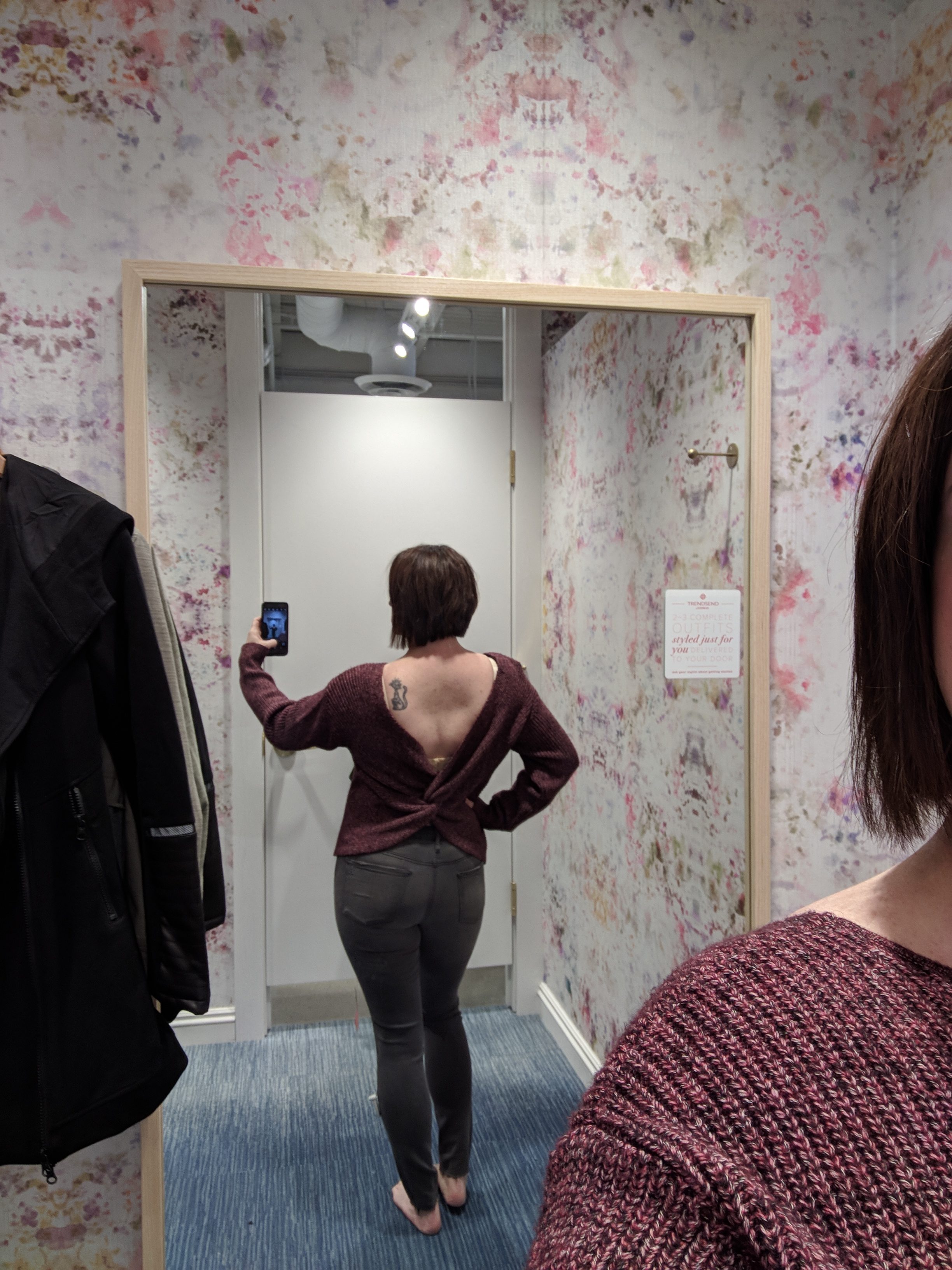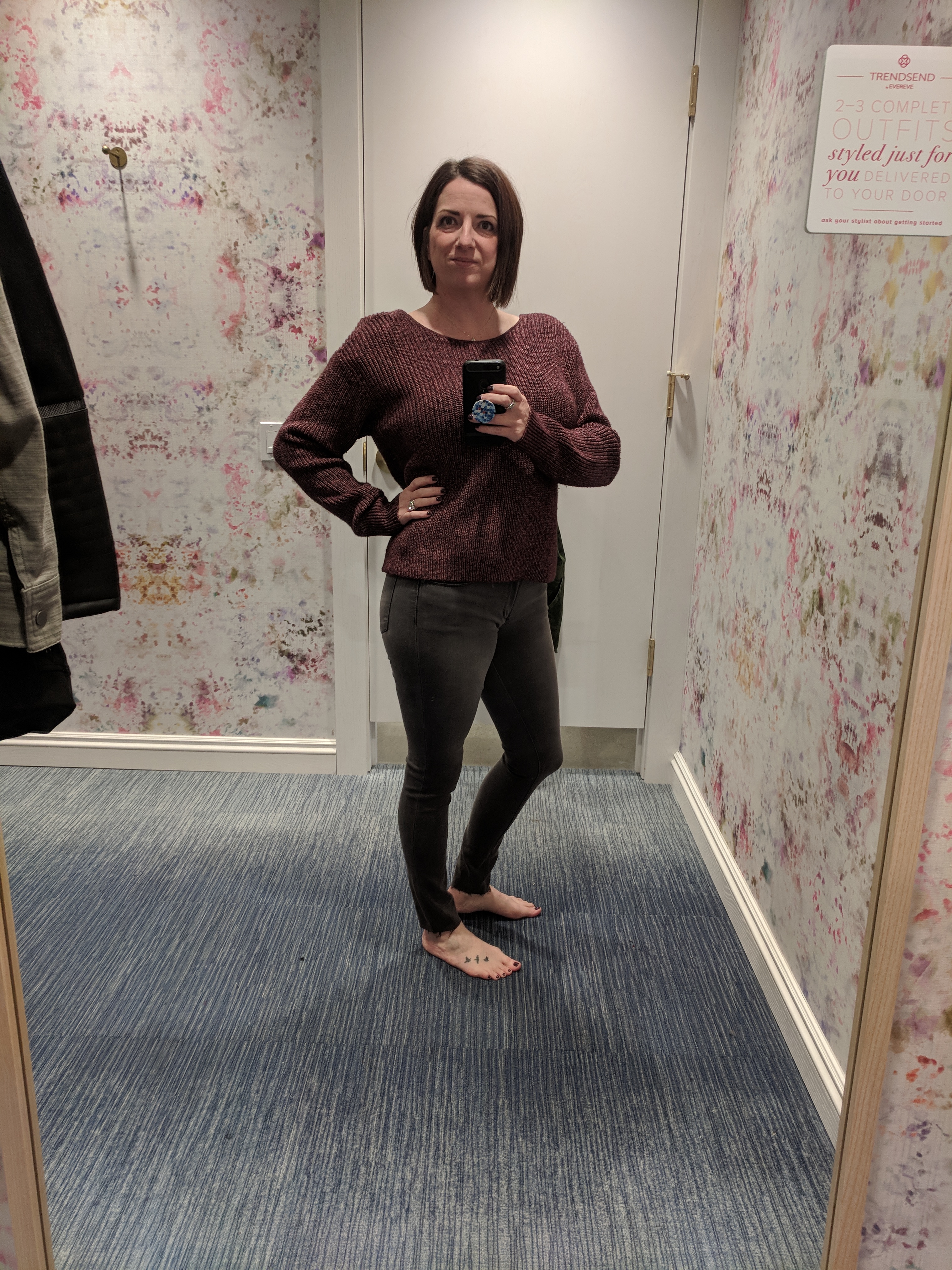 I found that the Articles of Society jeans were the perfect fit in a size down for me. I opted for size 27 instead of 28 because I have 28s and I’m constantly pulling them up. For the Quentin sweater, I also opted for a medium instead of a large. I’m in between usually due to having a large chest, but the medium was perfect. The large was falling off my shoulders. I will likely wear a tank top or bralette (over my bra) in the future.