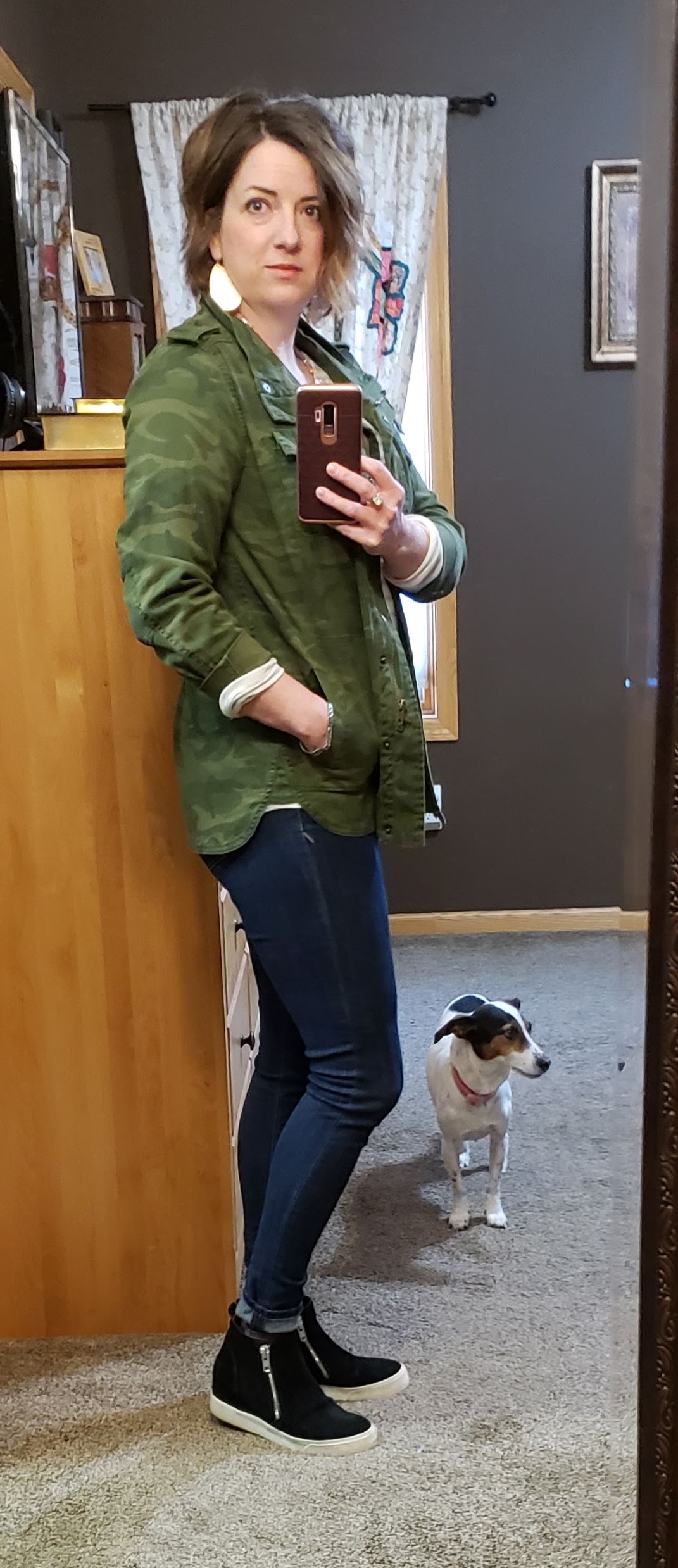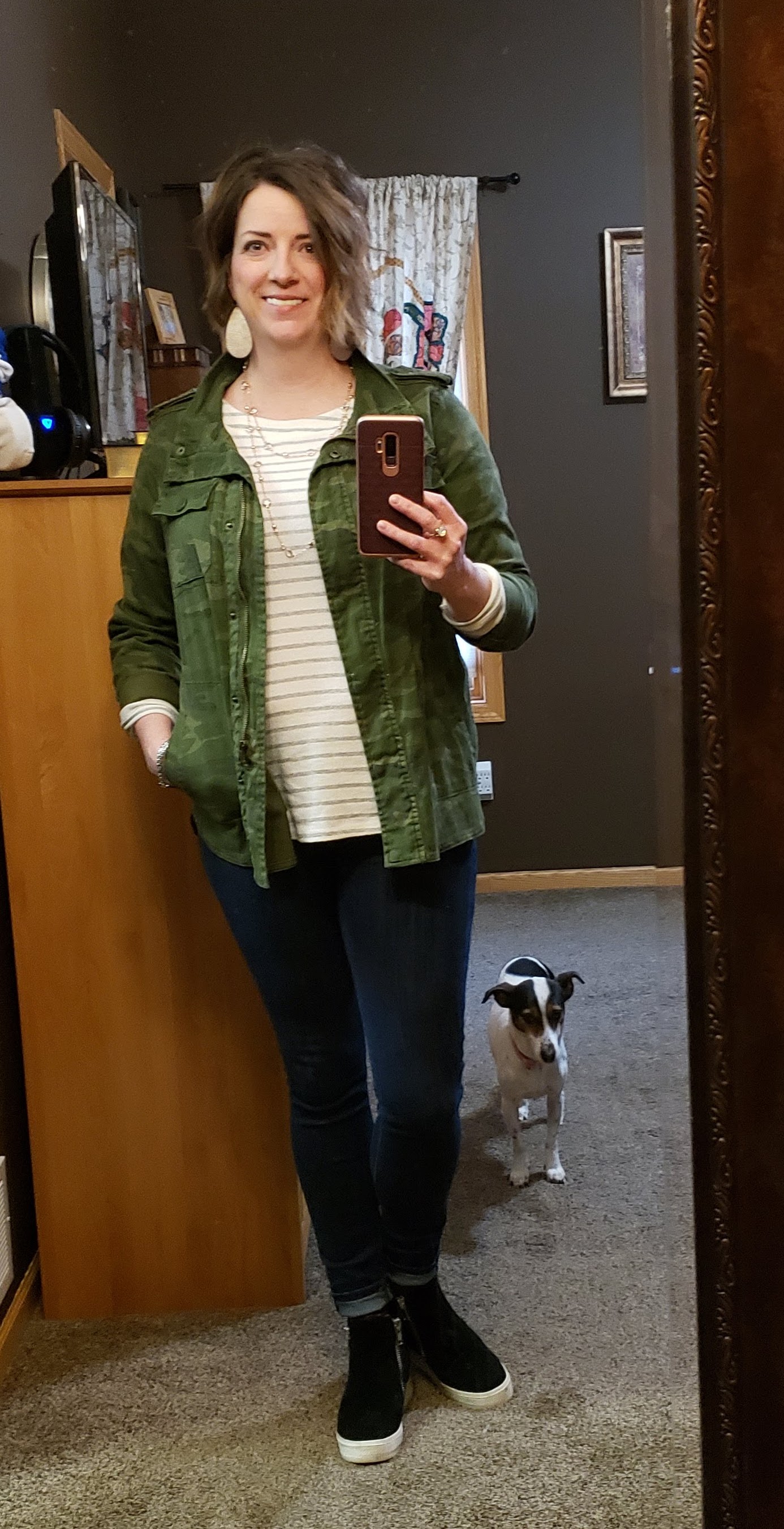 Mixing patterns is so much fun! Check out the stripes and camouflage I mixed below. I love that the stripes are just light enough that my shirt is neutral and allows the camo to be the center of attention on this outfit.